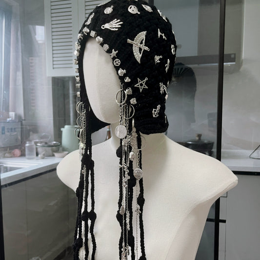 Decorated Knit Chain Charm Hat