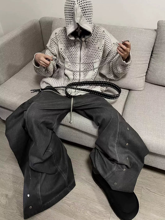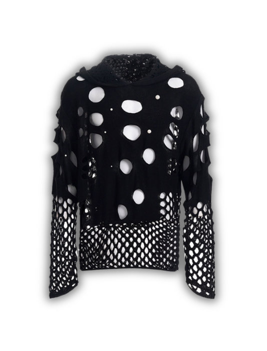 Mesh Hooded Sweater (Black/Gray)