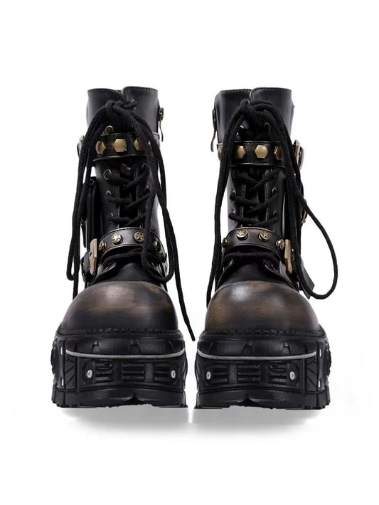Brown Gothic Biker Boots Unisex