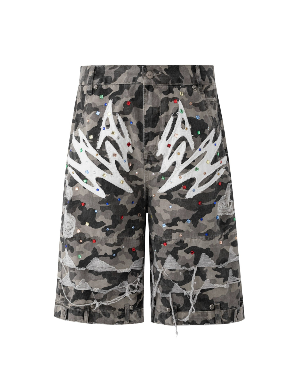 デザイン性と機能性を両立:迷彩×ダメージ加工で夏のストリートスタイルに最適。
