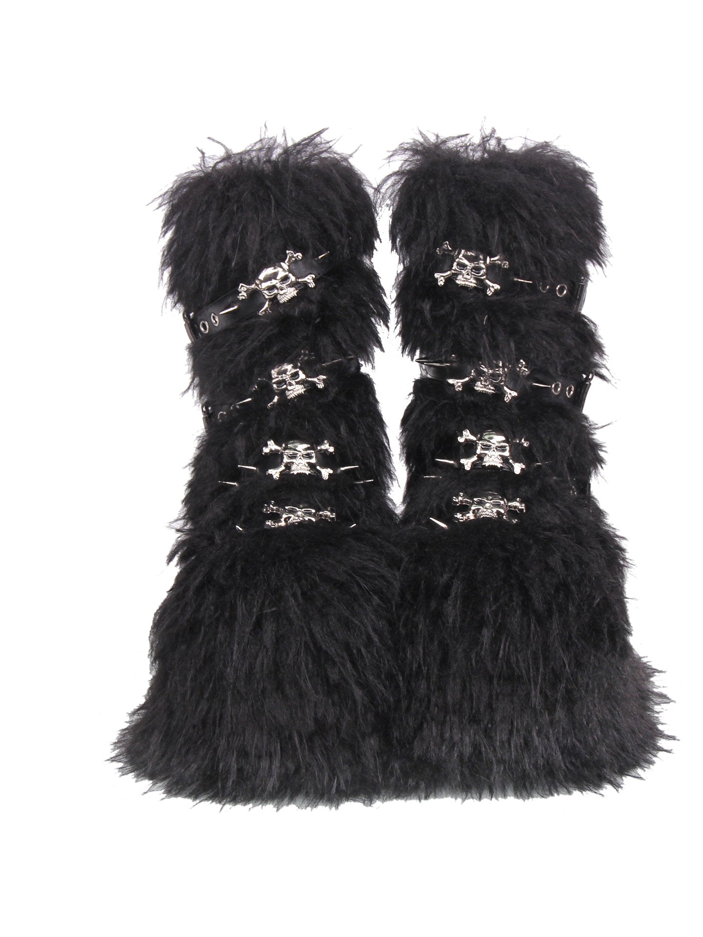 Long Fur Punk Platform Buckle Boots