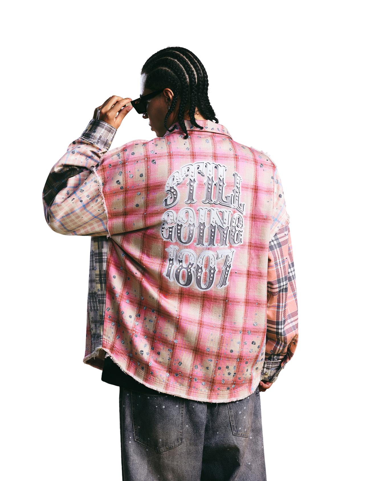 ホットダイヤモンド装飾を施したチェック柄シャツ。