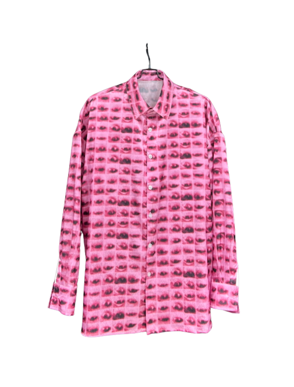 アイプリントが全面に施されたサイバーパンク風シャツ。
