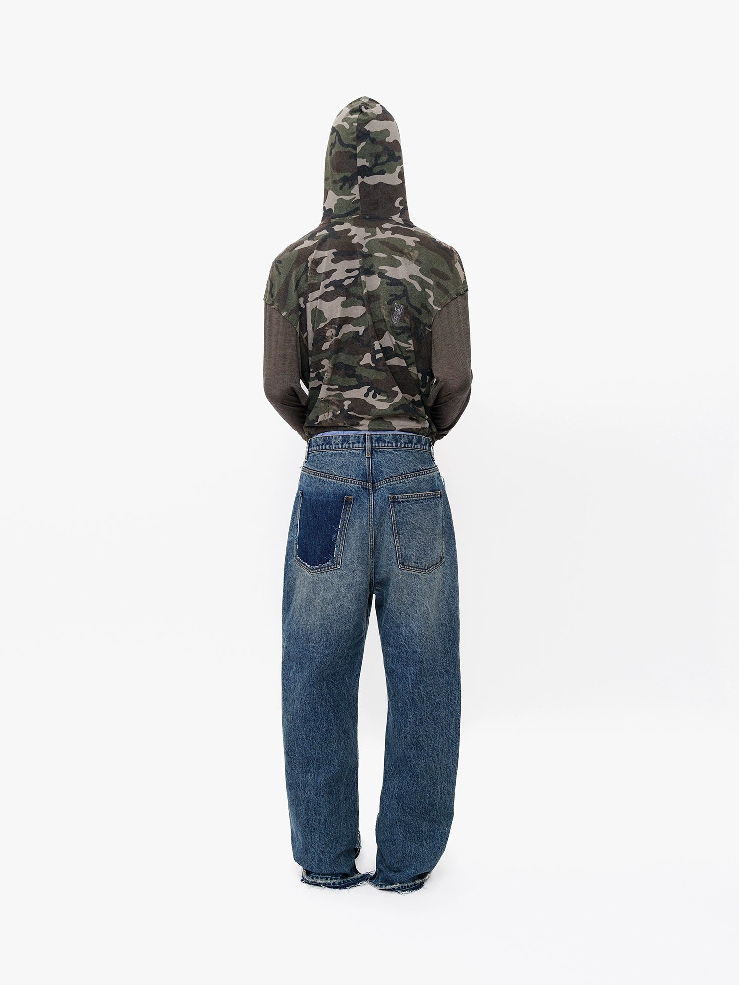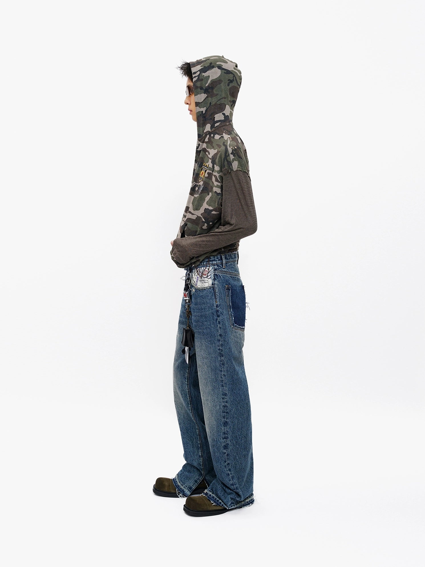 デザイン性と機能性を両立:ウォッシュ加工と迷彩柄で存在感抜群。