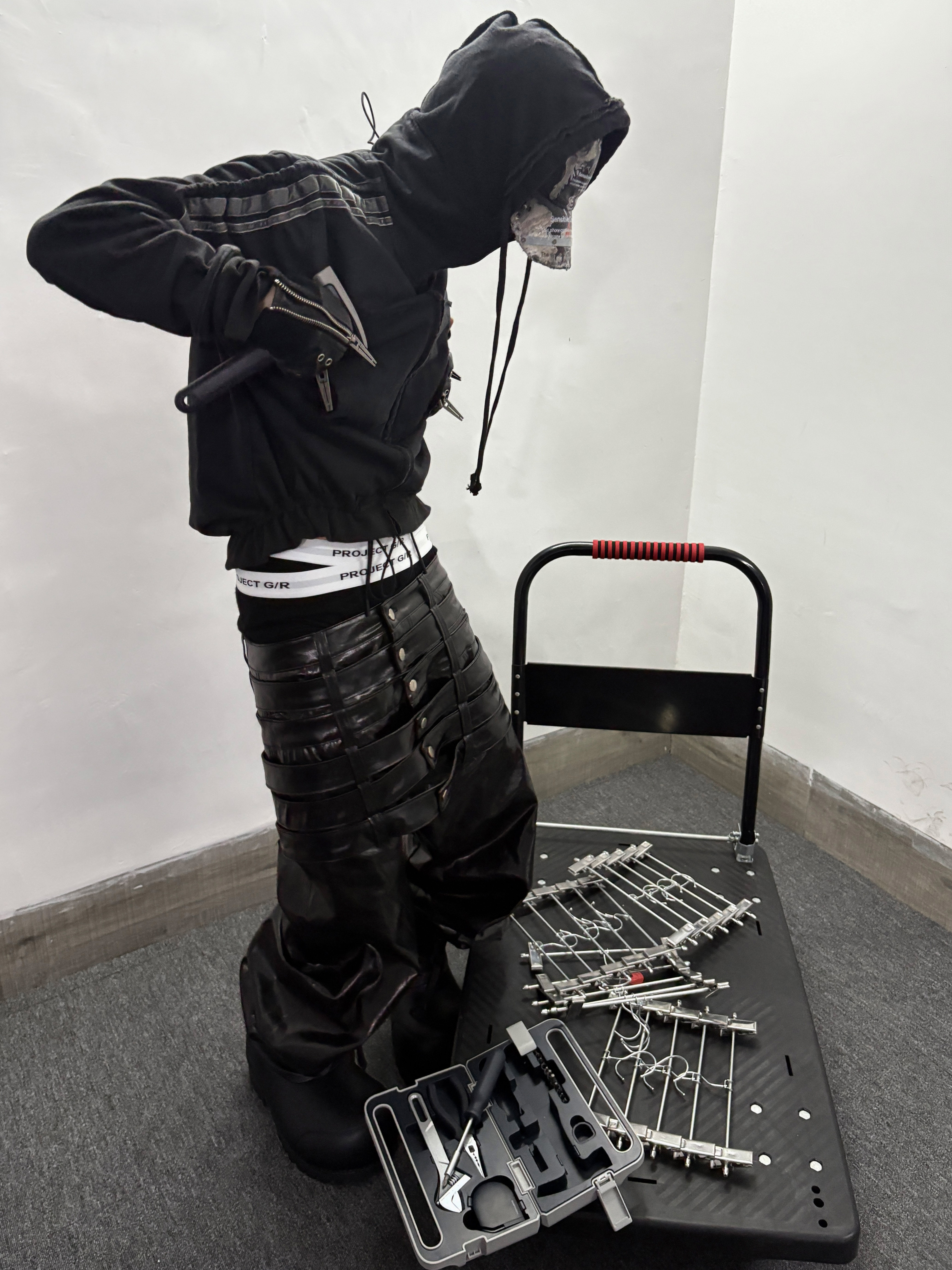 立体的で攻撃的なシルエットが、スタイリングに強い前衛性を与えます。