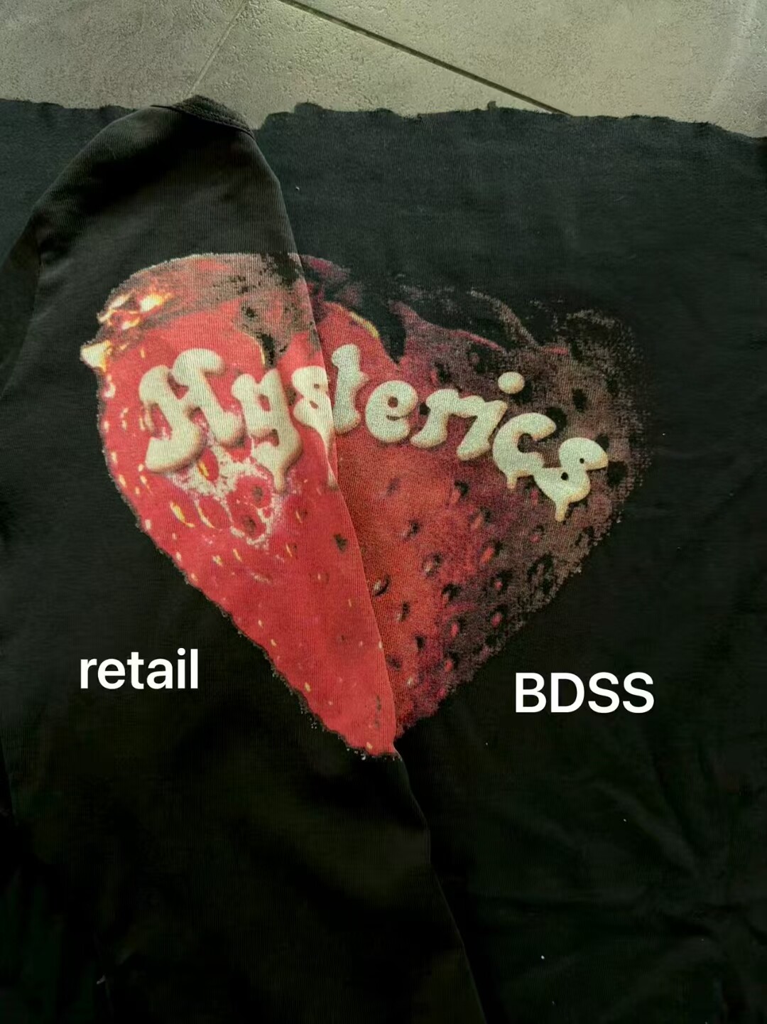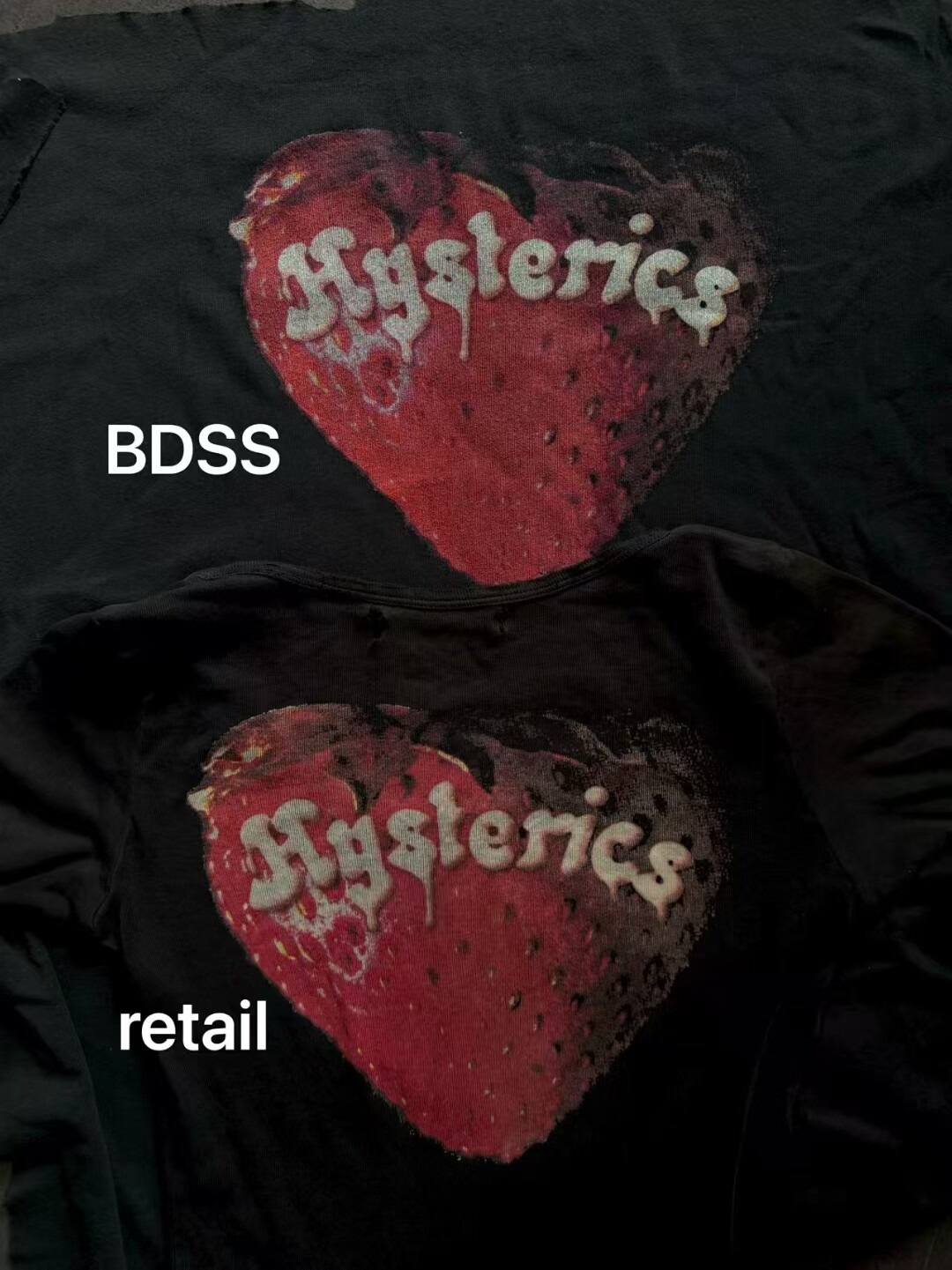 ストロベリーモチーフとスカルグラフィックを組み合わせた、インパクトのある長袖Tシャツです。