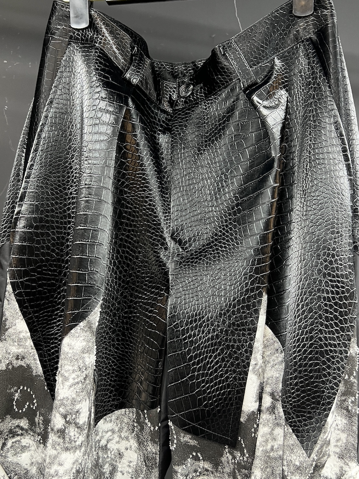 雪山プリントが特徴的なルーズシルエットのスキーパンツ。