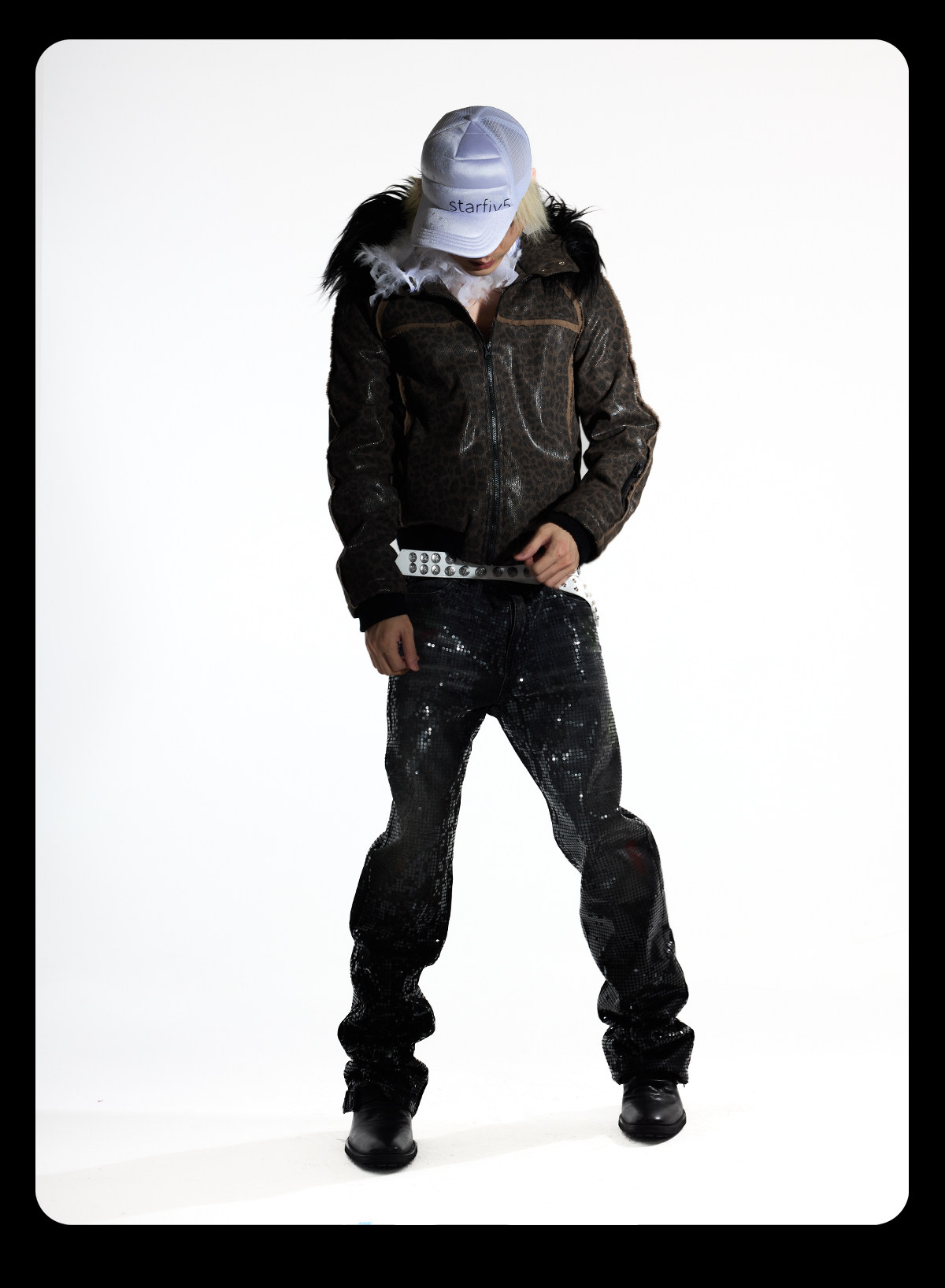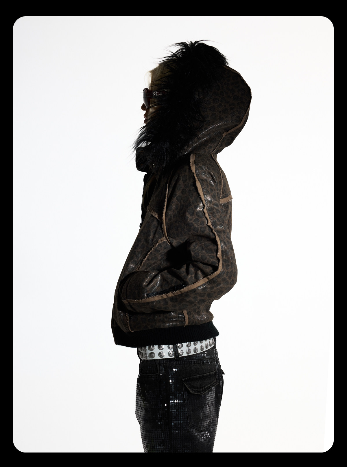 レオパード柄にグリッター感のある装飾を施した、存在感のあるジップジャケットです。
