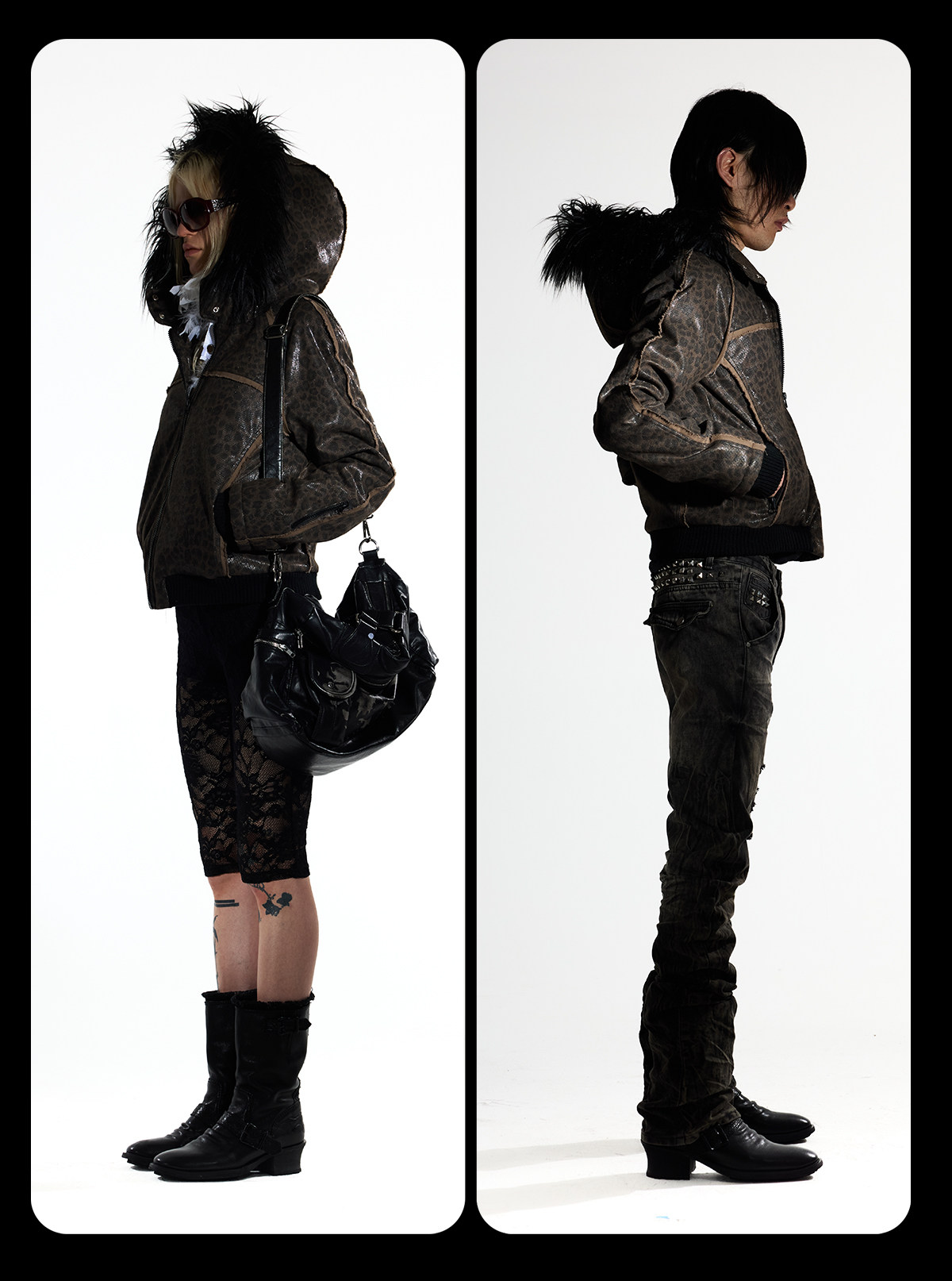 アンティーク調の色味と光沢のある表面が、スタイリングに妖しく前衛的なムードを加えます。