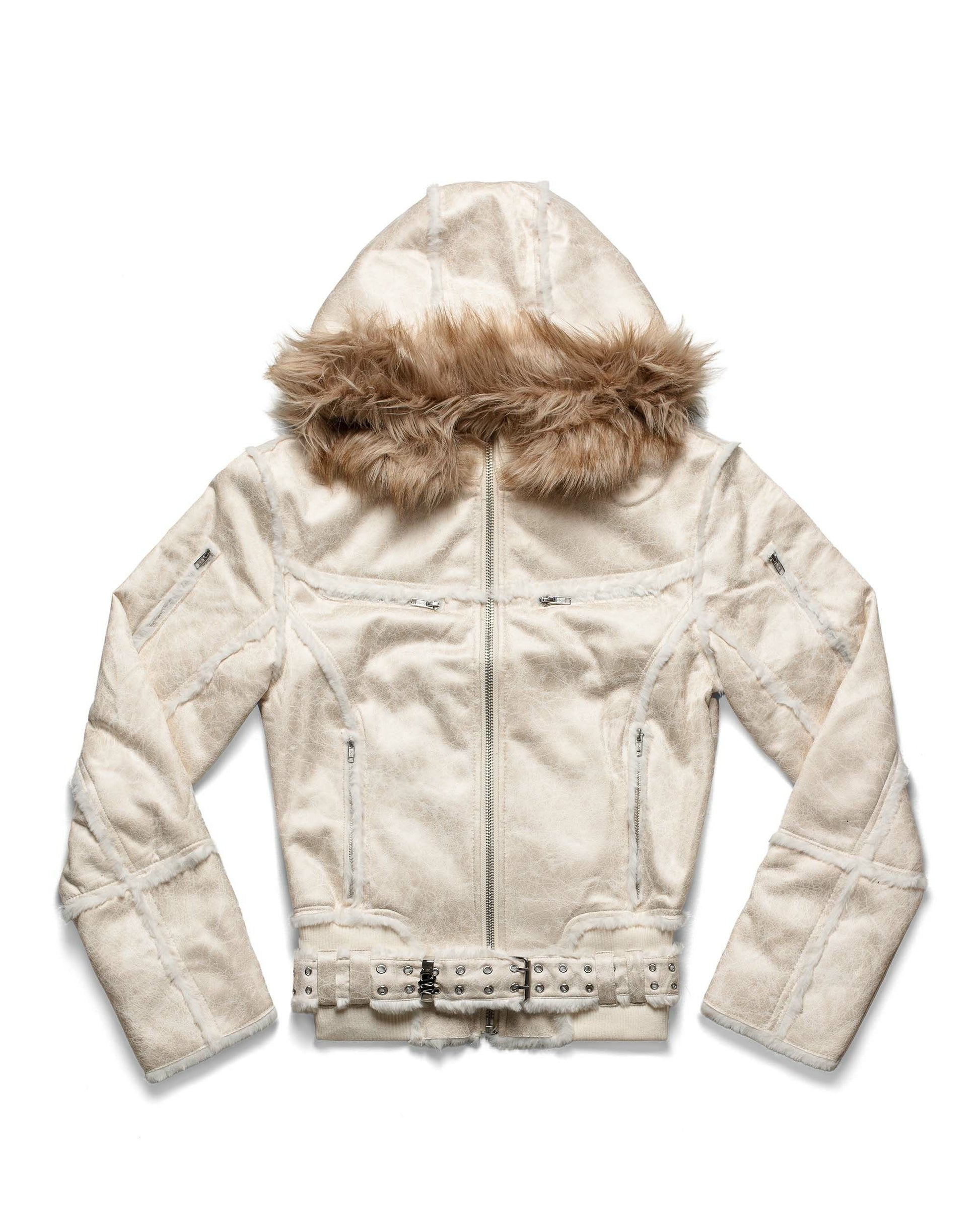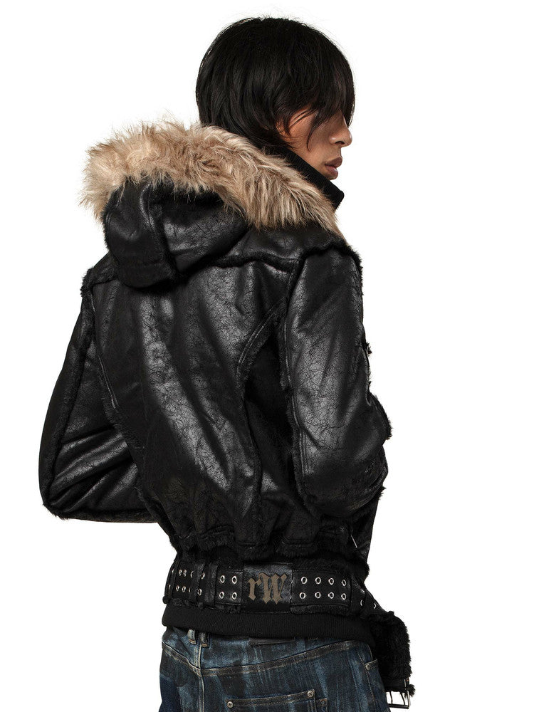 Leather belt fur collar hoodie zip jacket Martin match