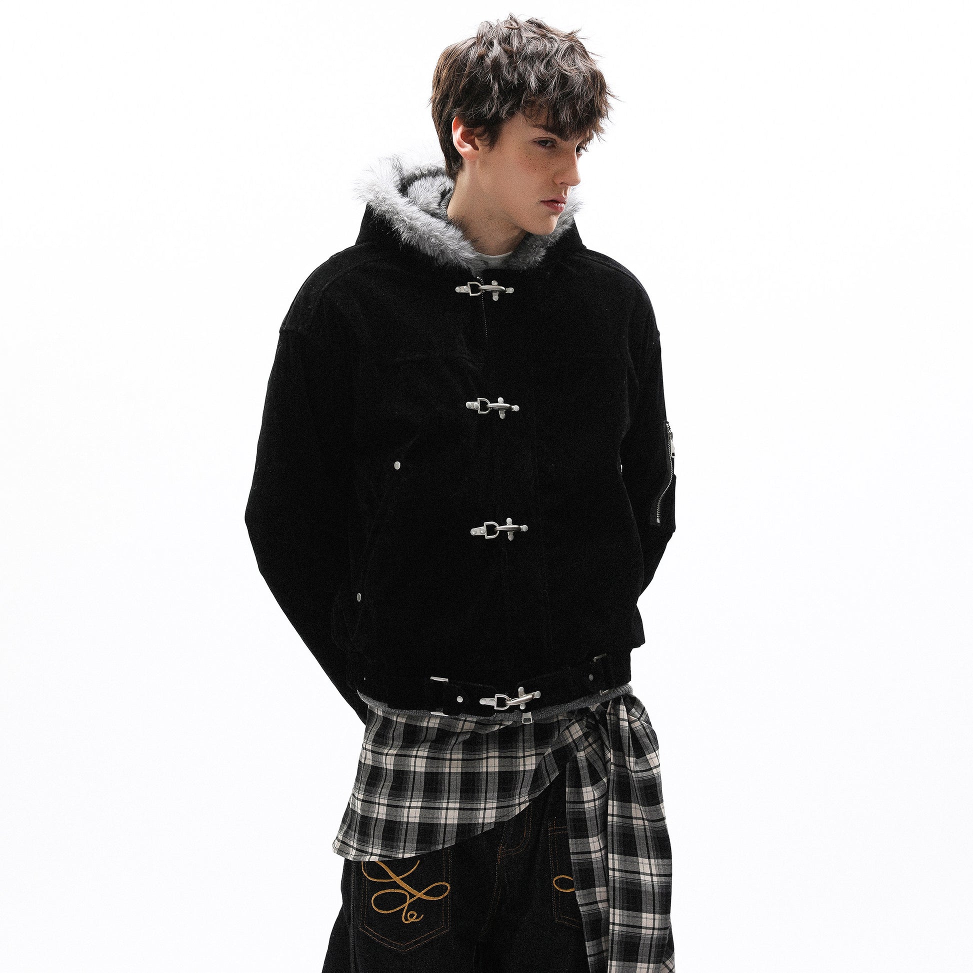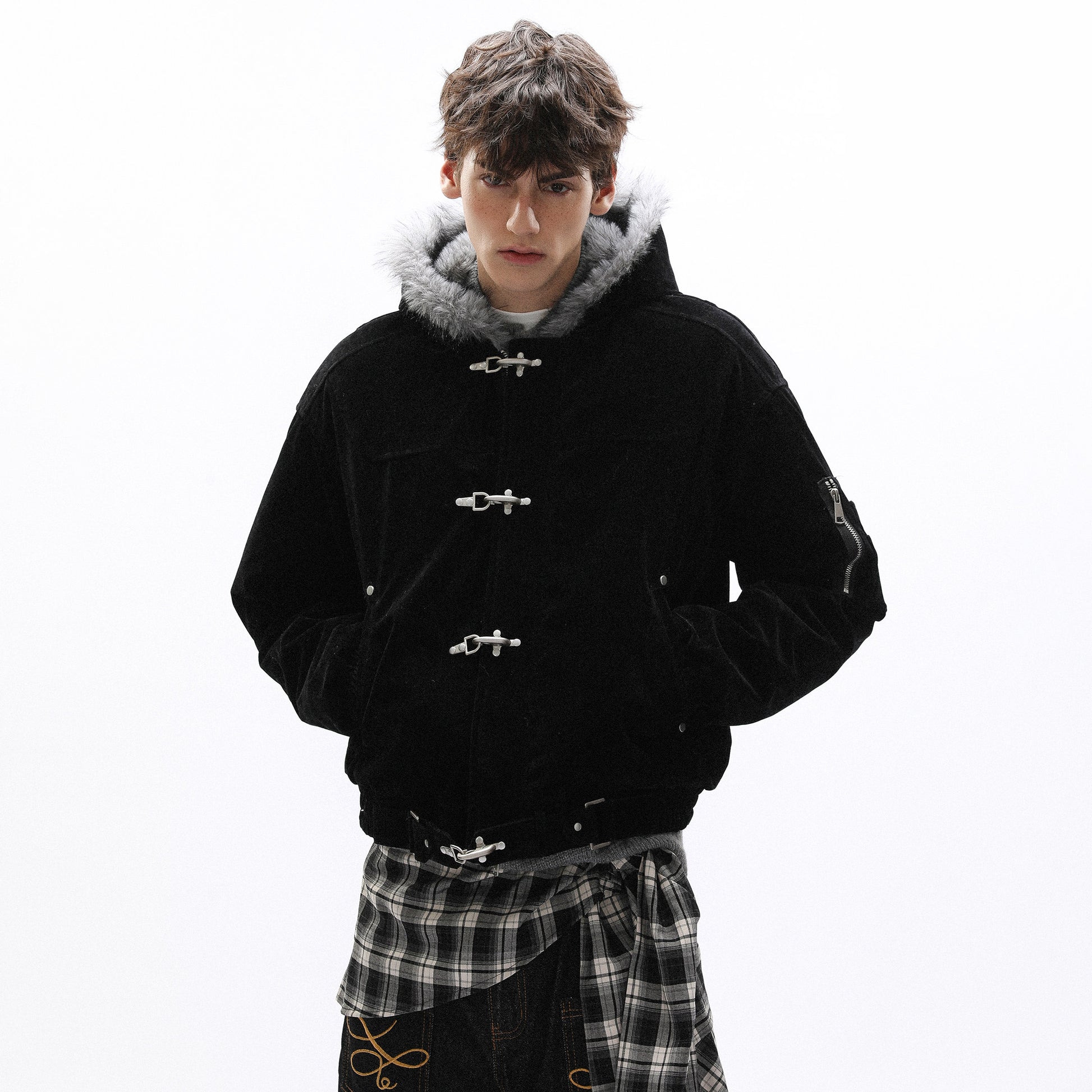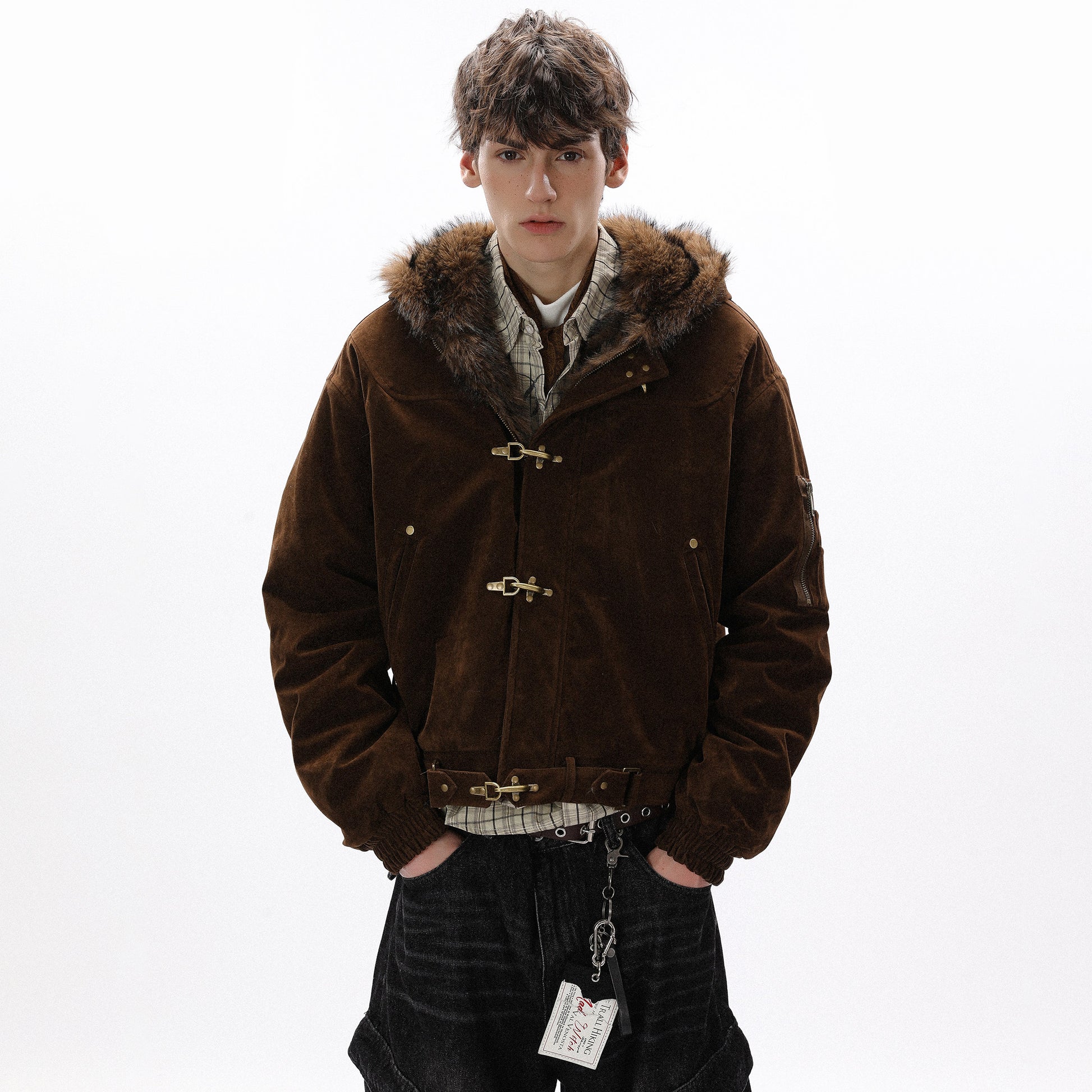 American design sense buckle ooded casual thick jacket