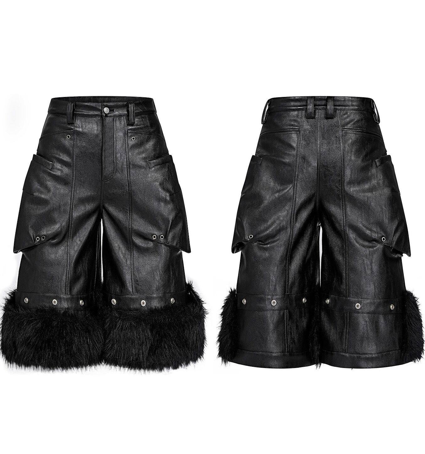 Oil Wax Fur Hem Leather Cropped Pants