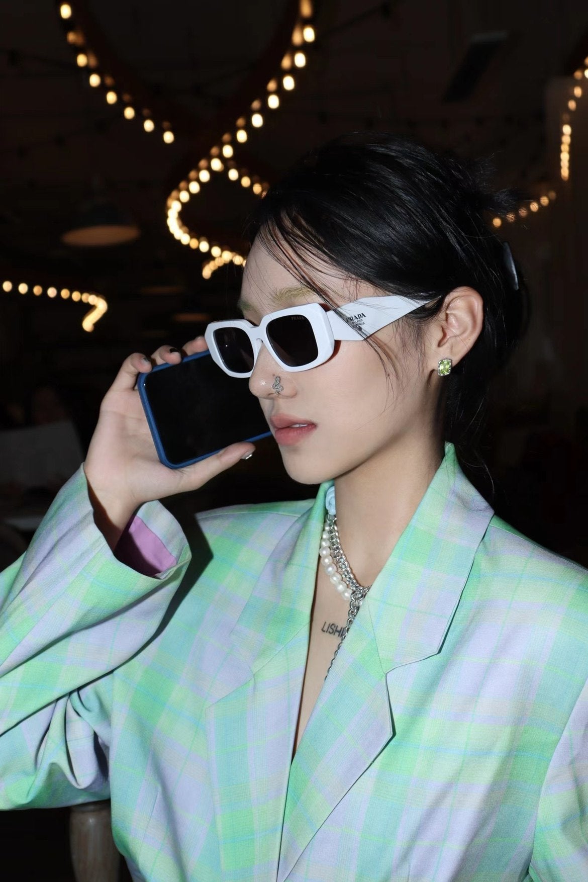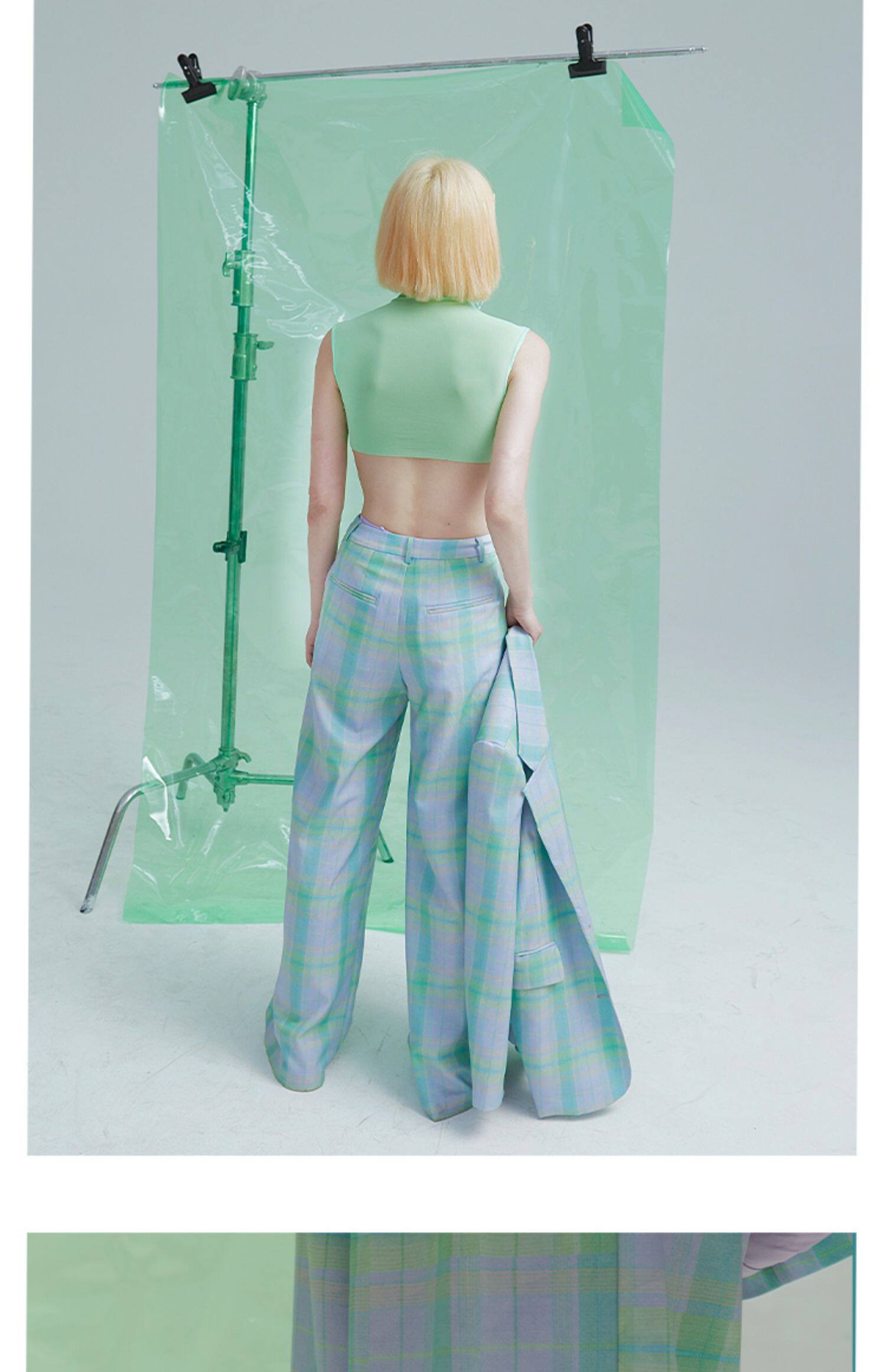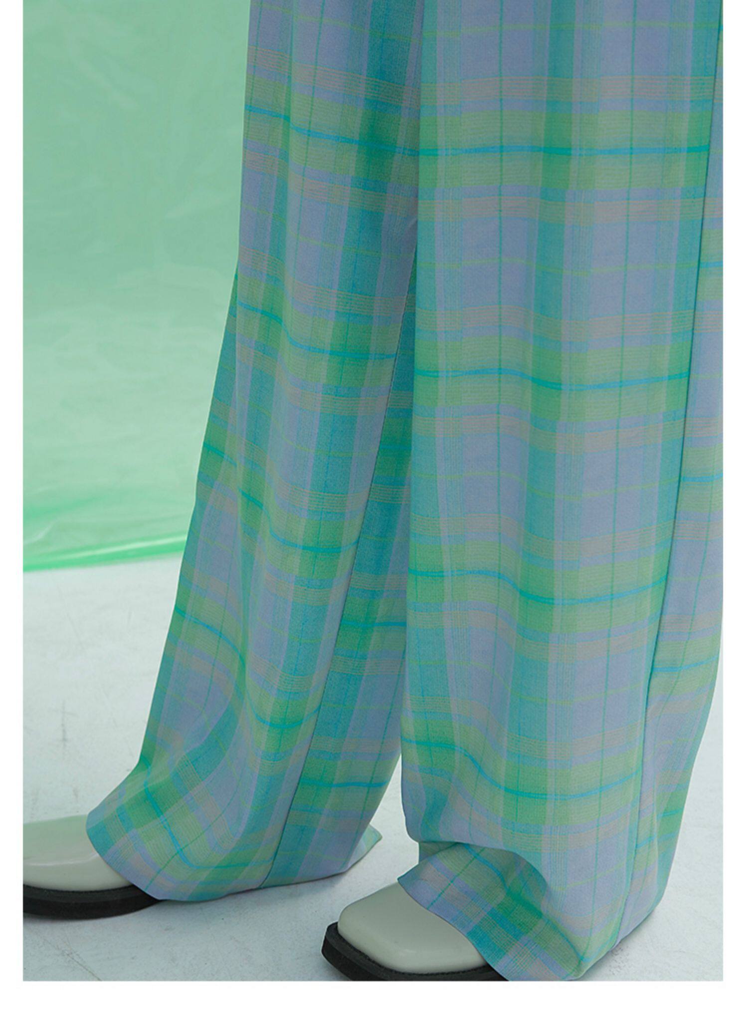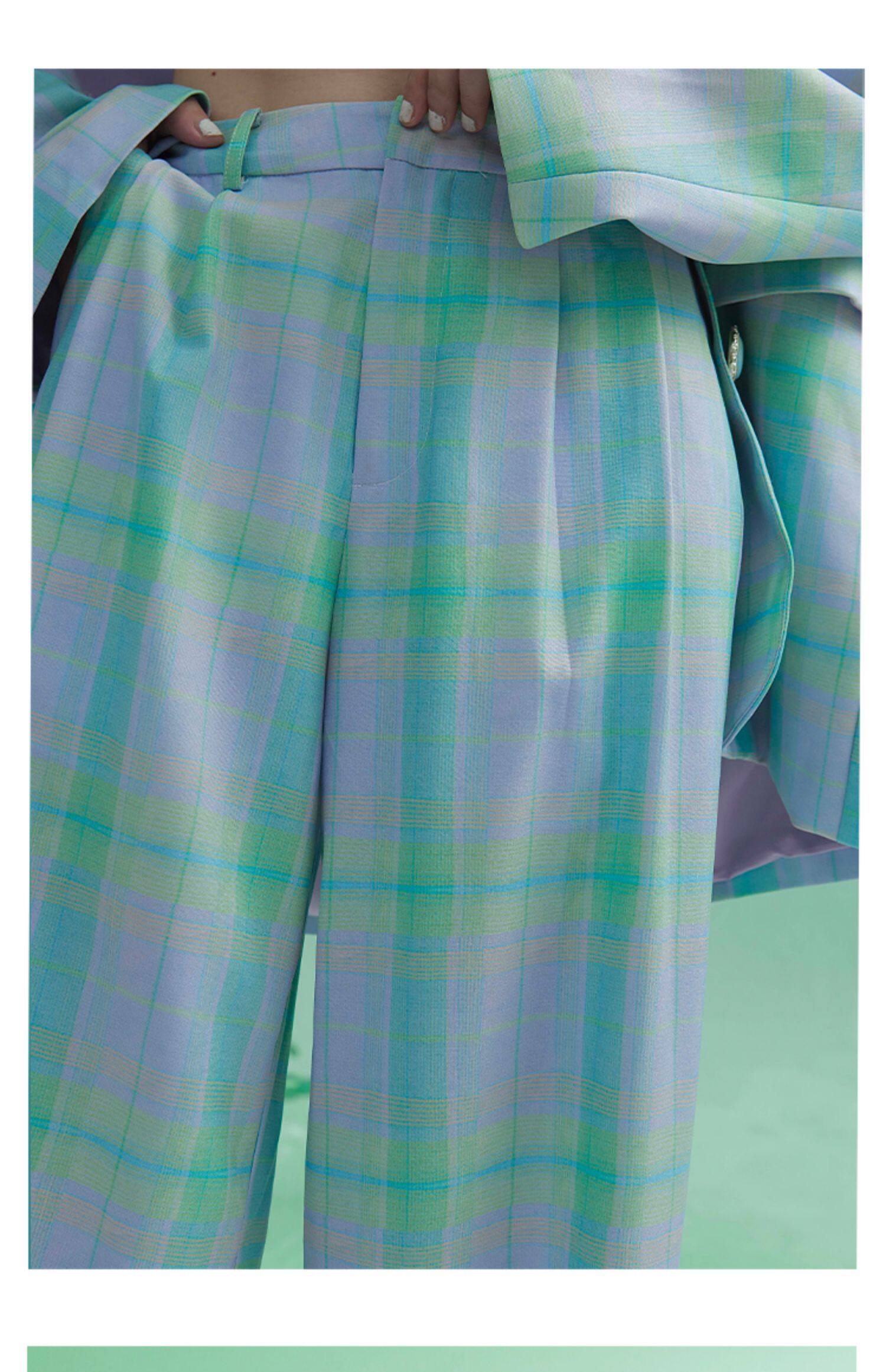 グリーンチェック柄が印象的な、レトロムード漂うルーズシルエットのスーツセットです。