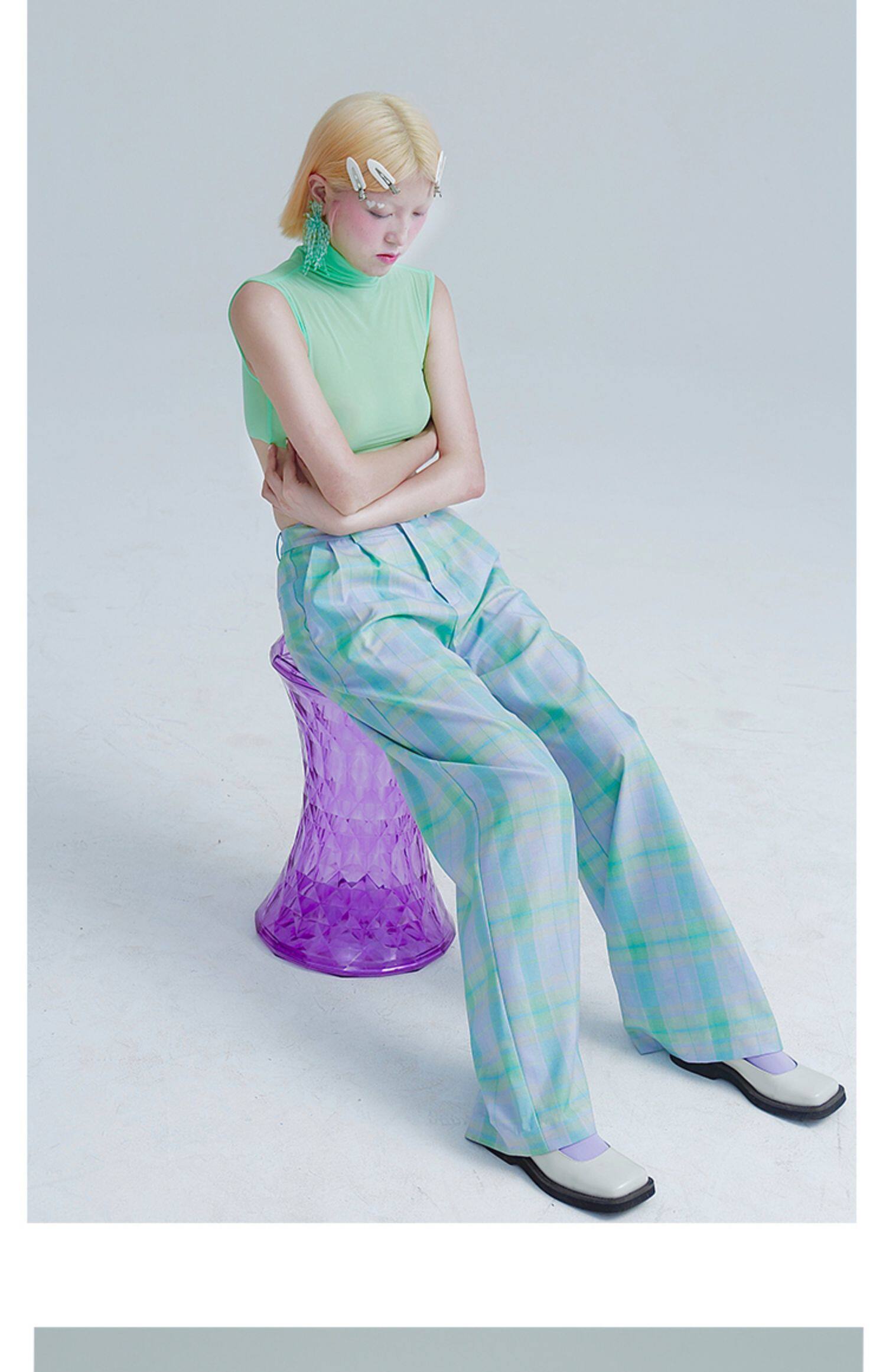 ネオン感のある配色と柔らかな落ち感が、クラシックながら現代的なスタイリングを演出します。